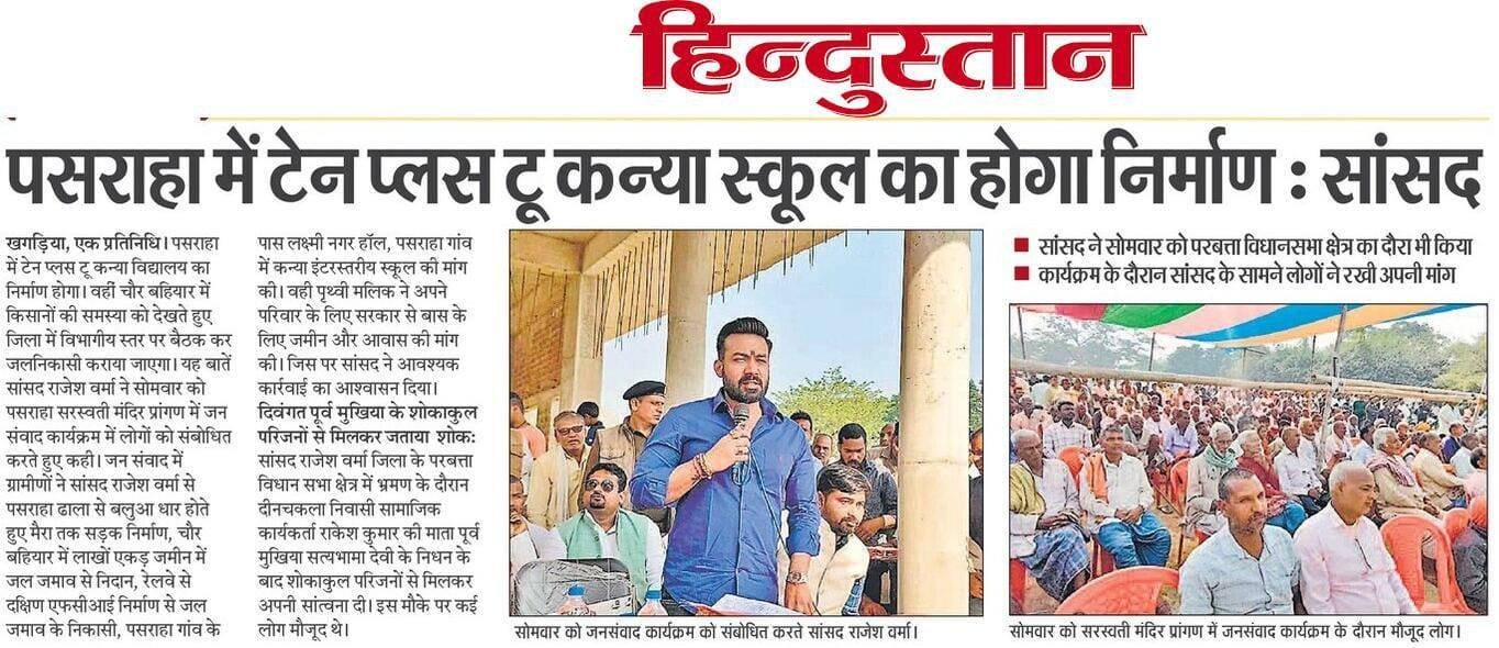 राजेश वर्मा के नेतृत्व में खगड़िया लोकसभ क्षेत्र में स्वास्थ्य, शिक्षा, आधारभूत ढाँचा, रेलवे, पुल-पुलिया, खेल और रोज़गार जैसे हर क्षेत्र में तेज़ प्रगति हुई। चाहे वह ₹460 करोड़ से मेडिकल कॉलेज निर्माण की स्वीकृति हो या 5 रेलवे ओवरब्रिज की मंज़ूरी या फिर पसराहा में ₹100 करोड़ की लागत से साइलो गोदाम का निर्माण, हर कार्य में उनकी साफ़ नीयत और स्पष्ट दिशा दिखाई देती है।
