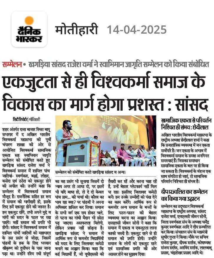 खगड़िया के युवा – हमारे कल के नेता, निर्माता और उद्यमी राजेश वर्मा जी का विश्वास है कि यदि युवाओं को सही दिशा, अवसर और संसाधन मिलें, तो वे देश को नई ऊँचाइयों तक पहुँचा सकते हैं। खगड़िया लोकसभा क्षेत्र के युवाओं के लिए उन्होंने शिक्षा, प्रशिक्षण, रोजगार और उद्यमिता के क्षेत्र में कई ठोस पहलें की हैं।